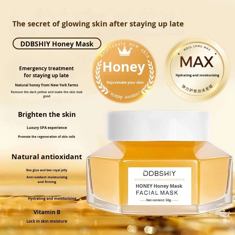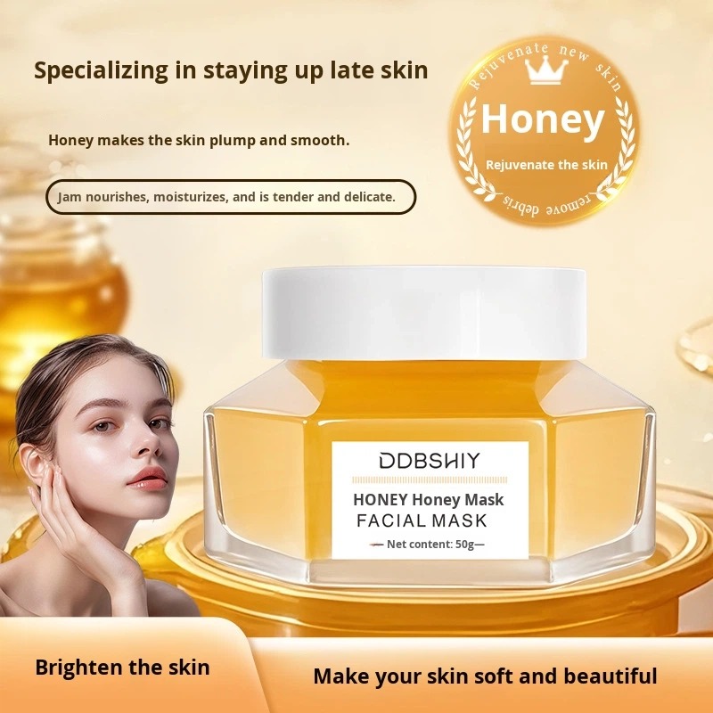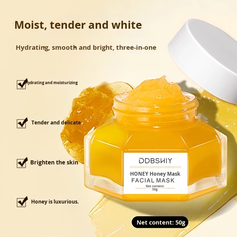 DDBHIY Honey Facial Mask – Formulated with honey, centella asiatica, and glycerin. Deeply hydrates, soothes, and gently brightens. Transforms from cream to a soft milky texture; leave on overnight for intensive nourishment. 50g. Perfect for dull, dry, or sensitive skin.