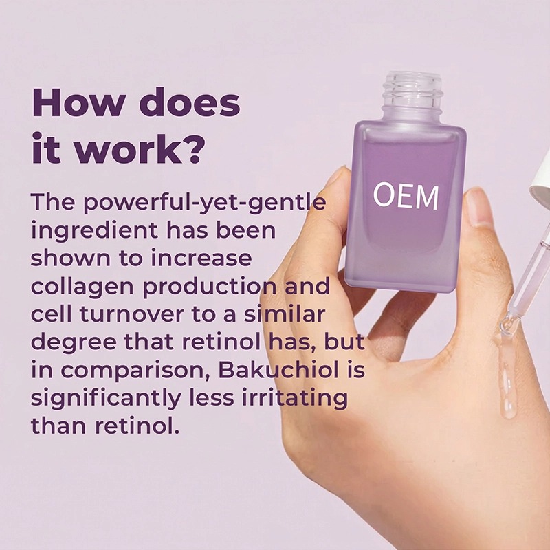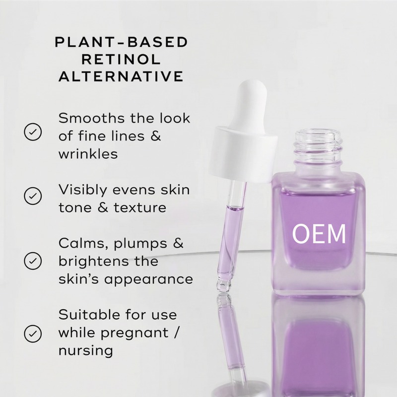 A gentle, plant‑based firming serum that helps smooth wrinkles and support elasticity – without the irritation of retinol. Bakuchiol and signal peptides work together to improve skin firmness, while the lightweight formula absorbs quickly. Ideal for sensitive skin and first‑time retinol users. Backed by our Ph.D. R&D team and GMPC cleanroom. Full customization – formula, packaging, fragrance, logo. Low MOQ, fast sampling (15 days). Trusted by brands in the US, Germany, and the Middle East.