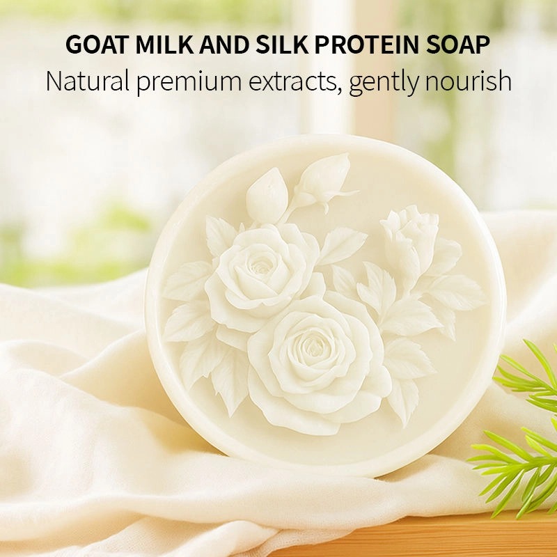 Our Goat Milk Silk Protein Soap is an all-in-one skincare bar. Infused with goat milk and silk protein, it deep cleans, brightens, hydrates, and fights acne. Mild for all skin types, it works for face & body, with an elegant 3D rose carved design.