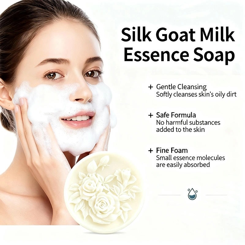 This Goat Milk & Silk Protein Baby Soap is a gentle, all-in-one cleansing bar specially formulated for children and infants. Enriched with natural goat milk and silk protein, its mild, rich foam gently cleanses delicate skin, helps protect against irritation, and locks in moisture—leaving skin soft, smooth, and never dry or tight. Suitable for baby's face, body, and hands, it features a delicate 3D rose carved design, making it perfect for daily nursery care or as a thoughtful baby gift. Available for private label customization.