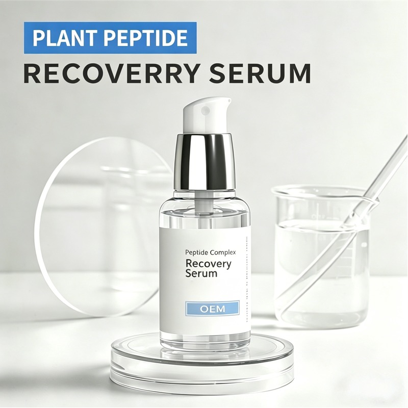 Plant Peptide Recovery Serum – Formulated with plant-derived active vesicles (next-generation bio‑carriers), ceramides, and hyaluronic acid. Helps calm post‑procedure redness, support barrier repair, and maintain deep hydration. Lightweight, fast‑absorbing, gentle on sensitive skin. Ideal for aftercare or daily barrier defense. Available for private label with custom formula and packaging.